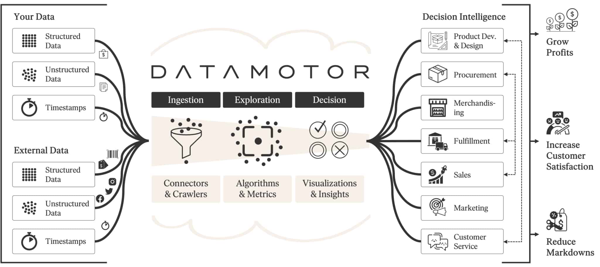 Data ingestion from various internal and external data sources.